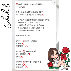出勤予定、空き有り 2026/02/15 18:02:10 お会いできるの楽しみにしてます🥰 X ▶ https://twitter.com/11_chanmika_11 直お問い合わせ個人LINE▶ https://lin.ee/fwRhN5X リットリンク▶https://lit.link/tsukishimachanmika 月島みか🌹
