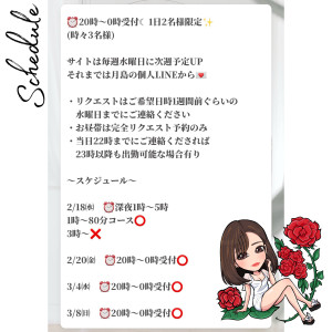 出勤予定、キャンセルも出てます 2026/02/17 06:07:47 キャンセル出たのと少し先の予定も⭕リクエストいただければ出れる日もありますー💕 当日今日会えるっ!ってなったら思い出してね月島おるよ😉 X ▶ https://twitter.com/11_chanmika_11直お問い合わせ個人LINE▶ https://lin.ee/fwRhN5Xリットリンク▶https://lit.link/tsukishimachanmika月島みか🌹