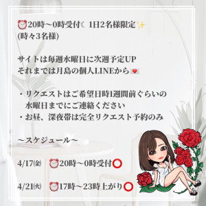 出勤❣ 2026/04/17 11:42:01|コメント:0件 出勤予定✨珍しい時間に出る予定です♪普段お会いできない方是非🫶 X ▶ https://twitter.com/12_chanmika_12直お問い合わせ個人LINE▶ https://lin.ee/fwRhN5Xリットリンク▶https://lit.link/tsukishimachanmika月島みか🌹